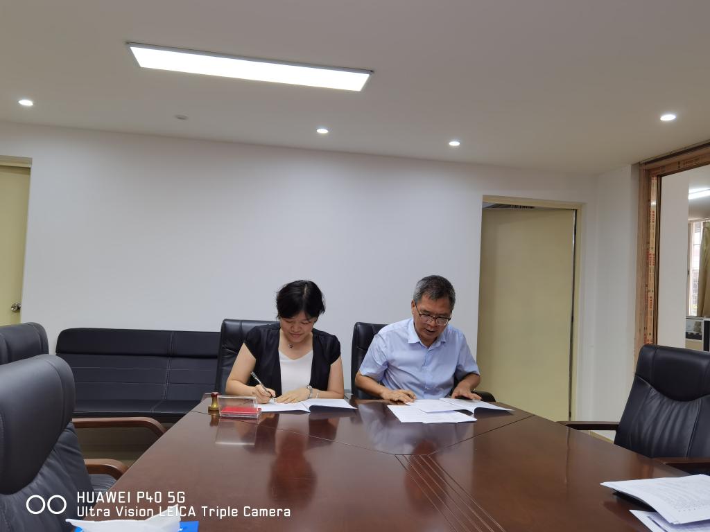 交流结束后,在参会人员的见证下,继续教育学院院长安立龙和广东易智教育科技有限责任公司负责人签订教师资格证考前培训合作协议。