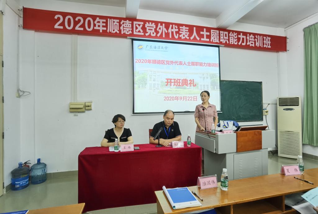 9月22日上午,“2020年顺德区党外代表人士履职能力培训班”在我校霞山校区顺利开班。佛山市顺德区委统战部副部长陆国伟,BETVLCTOR伟德在线党委办副主任、统战部副部长袁路等人出席开班仪式。袁路代表BETVLCTOR伟德在线致欢迎词。开班仪式由继续教育学院刘靖主持。