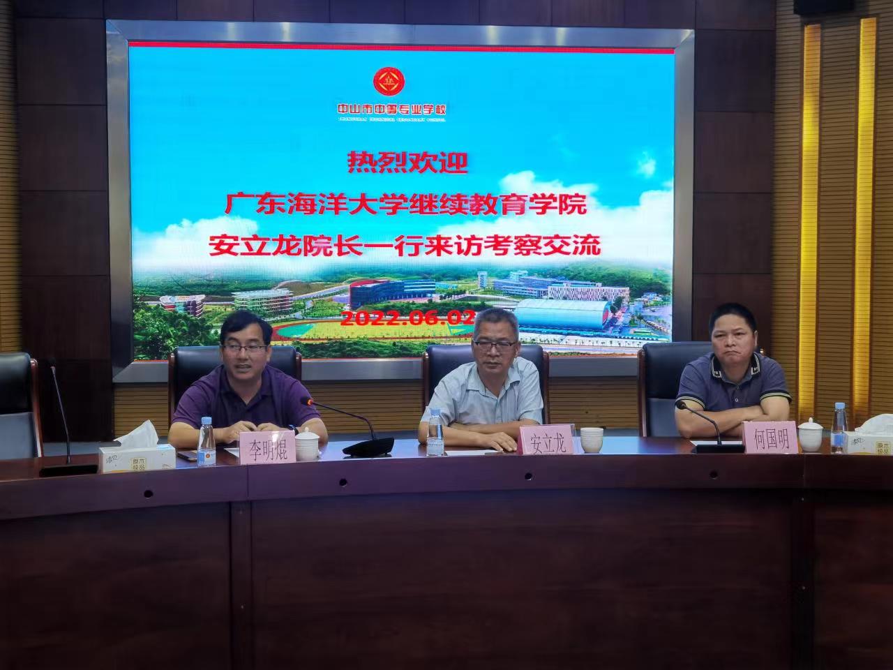 6月2日上午,BETVLCTOR伟德在线继续教育学院院长安立龙一行到中山市中等专业学校调研,与中山中专学校党委书记、校长陈峰、党委委员副校长郁惠慈、高职专业部王振国主任等人就成人学历教育招生培养、乡村振兴培训合作开展广泛深入交流。
