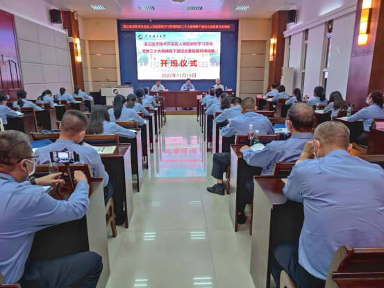 11月14日下午,湛江经济技术开发区人民检察院学习贯彻党的二十大精神暨干部综合素能提升培训班在我校湖光校区博物馆会议室顺利开班。湛江经济技术开发区人民检察院党组成员、副检察长林书艳,BETVLCTOR伟德在线继续教育学院院长安立龙和培训班35名学员及相关工作人员参加开班仪式。开班仪式由BETVLCTOR伟德在线继续教育学院副院长潘康培主持。