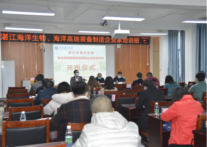 12月19日下午,由我校承办的湛江市海洋生物、海洋高端装备制造领域企业家培训班在我校霞山校区教学B楼学术报告厅顺利开班。湛江市工业和信息化局党组成员、副局长李正江,BETVLCTOR伟德在线继续教育学院副院长何国明和培训班学员及相关工作人员参加开班仪式。开班仪式由继续教育学院招生办主任李明焜主持。