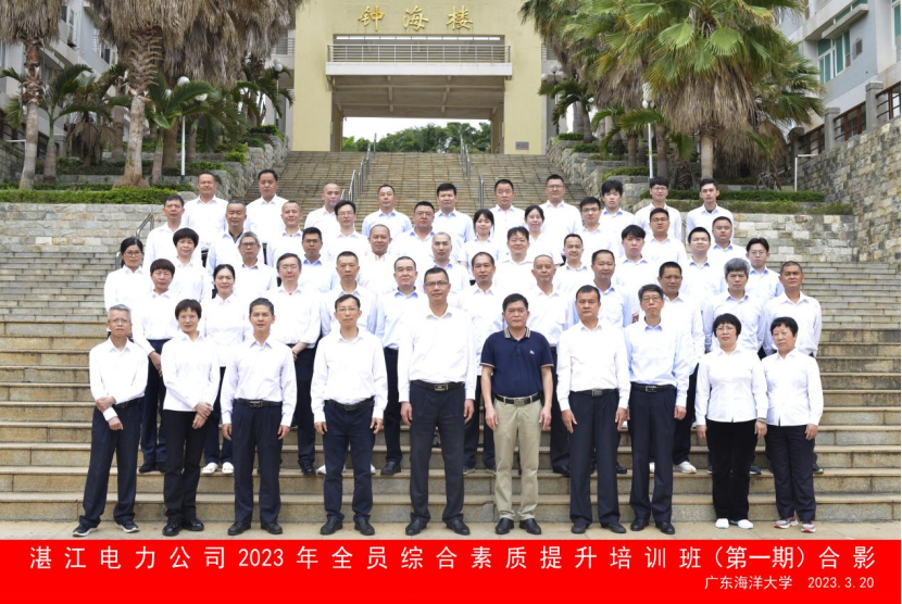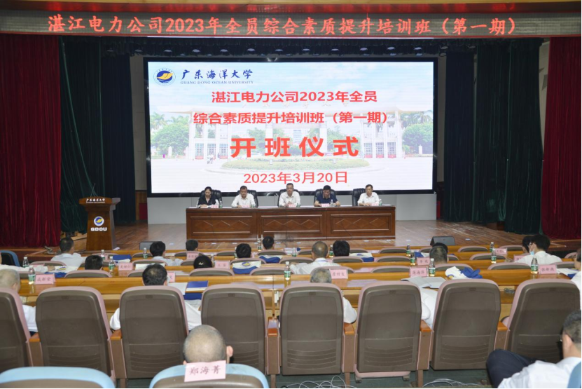 3月20日上午,湛江电力公司2023年全员综合素质提升培训班(第一期)在我校湖光校区多功能厅顺利开班。湛江电力公司副总经理梁中荣、副总工程师陈如森、人力资源部部长陈挺,BETVLCTOR伟德在线继续教育学院副院长潘康培和培训班51名学员及相关工作人员参加开班仪式。