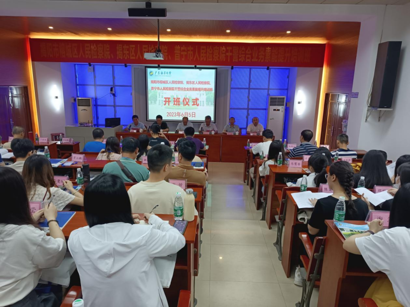 6月5日上午,揭阳市榕城区人民检察院、揭东区人民检察院、普宁市人民检察院干警综合业务素能提升培训班(第一期)在我校霞山校区顺利开班。揭阳市榕城区人民检察院党组成员、副检察长方帅,揭阳市榕城区人民检察院党组成员、政治部主任罗敏雄,揭阳市揭东区人民检察院党组成员、政治部主任周英鹏,普宁市人民检察院党组成员、政治部主任庄耿浩,BETVLCTOR伟德在线继续教育学院院长安立龙和培训班61名学员及相关工作人员参加开班仪式。开班仪式由继续教育学院副院长潘康培主持。