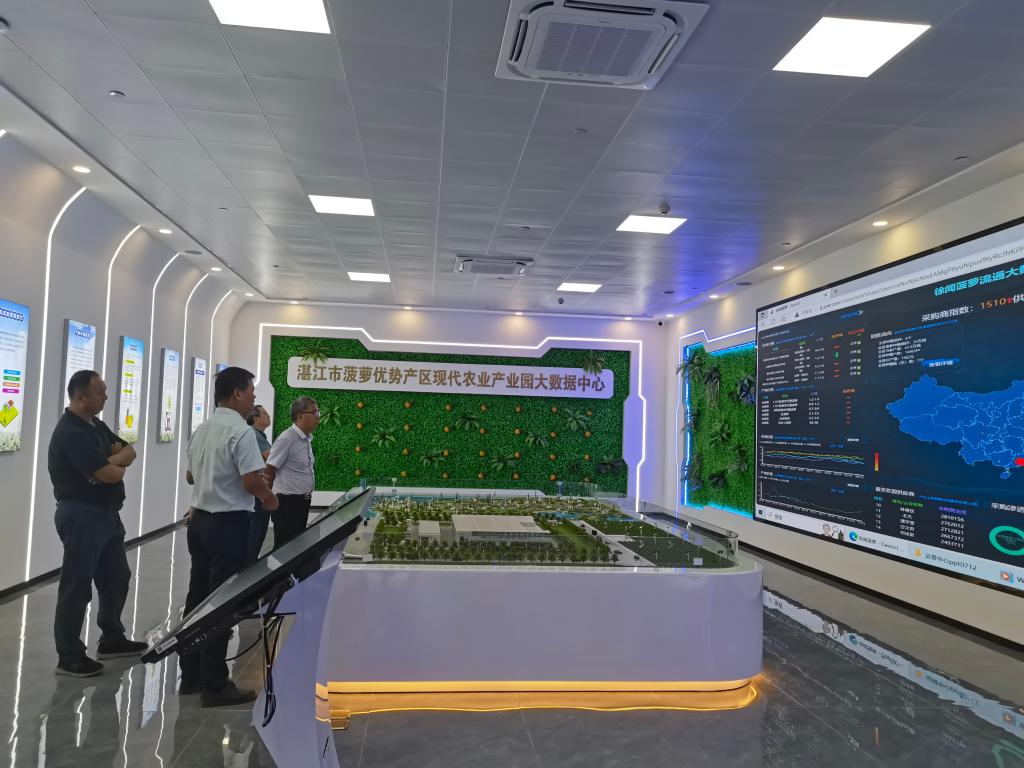 当天下午,安立龙一行先来到徐闻县连香农产品农民专业合作社,实地调研考察菠萝种植、储存、流通、加工及销售情况。随后,一行到广东菠萝跨县集群产业园(湛江垦区),实地参观了湛江市菠萝优势产区现代农业产业园大数据中心,参观了车间机械设备。一行对企业积极探索菠萝深加工技术,全力加强品牌建设,以数字赋能推动菠萝产业发展表示充分肯定,并在菠萝良种培育推广、种植技术、拉长精深加工产业链、加快菠萝现代农业产业园建设等方面提出了具体指导意见。