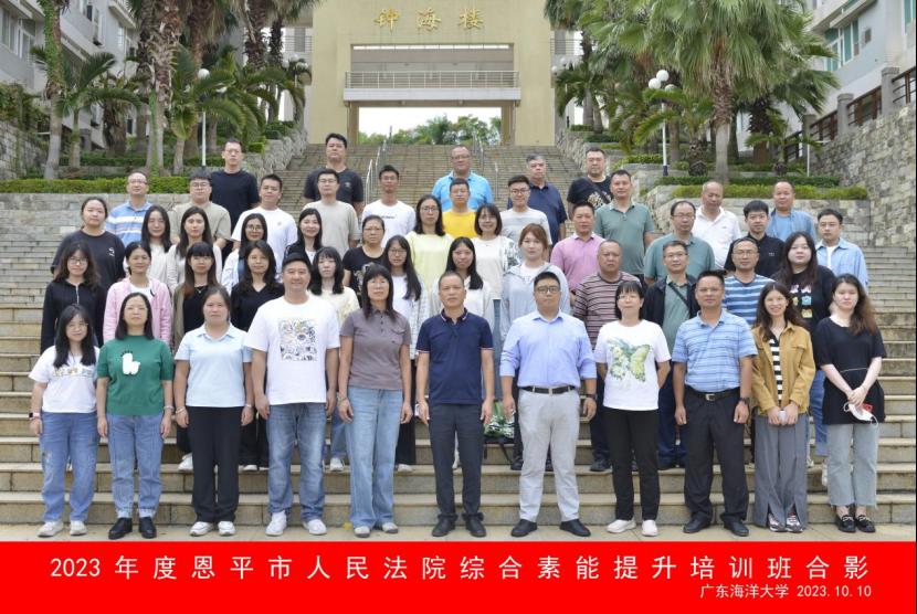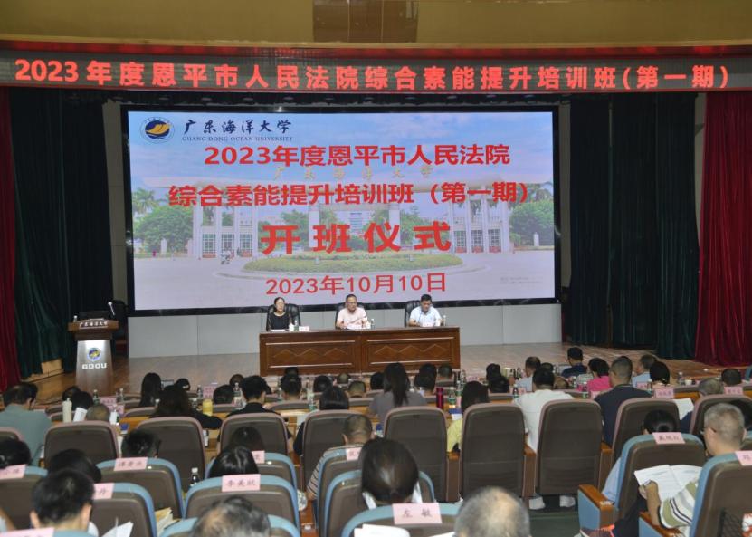 10月10日下午,恩平市委政法委、恩平市人民法院和新会区人民法院干警综合素能提升培训班在我校湖光校区顺利开班。恩平市委政法委常务副书记梁焕深,恩平市委政法委副书记黄慧齐,新会区人民法院党组成员、副院长赵汝佳,新会区人民法院党组成员、副院长丘国汉,新会区人民法院党组成员、政治部主任梁健浩,恩平市人民法院审判委员会专职委员吴光照,恩平市人民法院审判委员会专职委员 郑平平,BETVLCTOR伟德在线继续教育学院副院长潘康培和培训班学员及相关工作人员参加开班仪式。开班仪式由BETVLCTOR伟德在线继续教育学院刘靖主持。