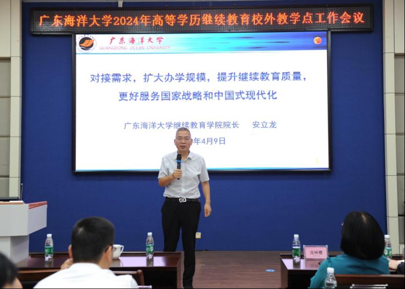 安立龙作《对接需求,扩大办学规模,提升继续教育质量,更好服务国家战略和中国式现代化》主题报告,全面分析了我校高等学历继续教育和非学历教育培训面临的新形势新机遇和新挑战,分析了新形势下继续教育工作的新格局,强调要立足学校实际,发挥学科专业优势,认真学习贯彻落实习近平总书记关于海洋强国、乡村振兴和全民终身学习型社会、学习型强国建设的重要论述,以国家社会行业产业需求和学生发展需求为导向,不断扩大办学规模,优化人才培养结构,加强和改进招生工作,加强教师队伍和教学管理,完善合作共赢机制,推进继续教育数字化建设,深化教学改革,扩大继续教育规模,提升人才培养质量,促进学历继续教育和非学历继续教育融合发展,更好服务海洋强国和农业农村现代化。