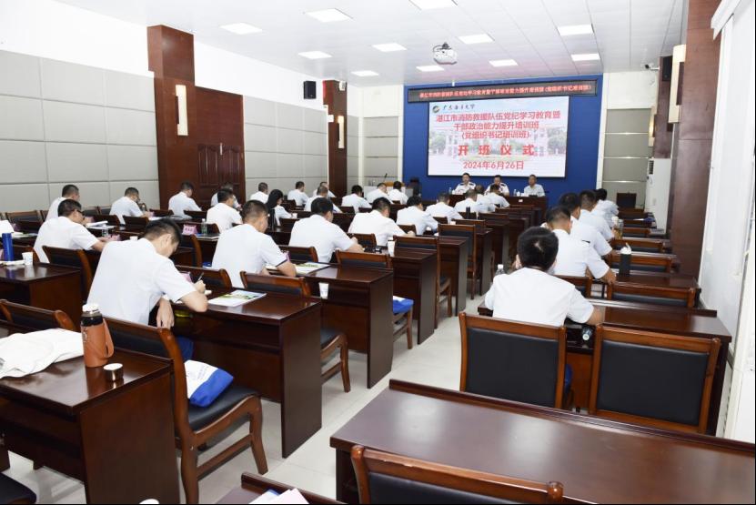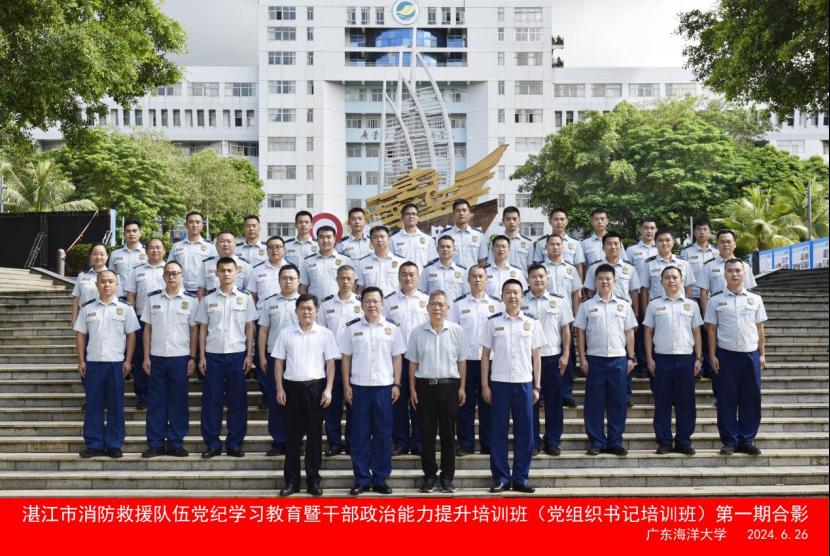 为深入学习贯彻习近平新时代中国特色社会主义思想,深化党纪学习教育成效,建强党组织书记队伍,提升干部队伍综合素质,6月26日上午,湛江市消防救援队伍党纪学习教育暨干部政治能力提升培训班(党组织书记培训班)在我校湖光校区顺利开班,共有35名学员参加了此次培训。