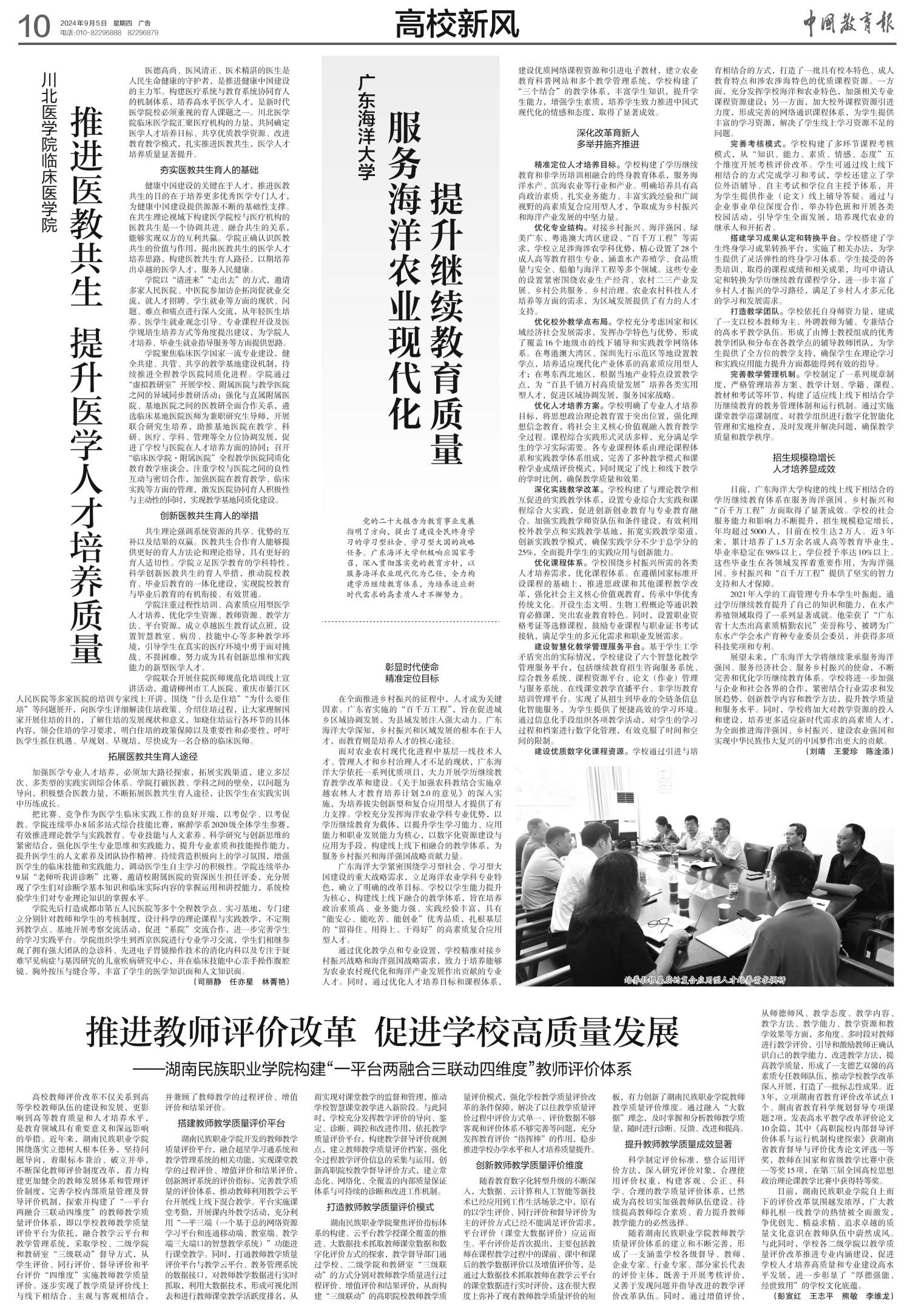 通过优化教学点和专业设置,学校精准对接乡村振兴战略和海洋强国战略需求,致力于培养能够为农业农村现代化和海洋产业发展作出贡献的专业人才。同时,通过优化人才培养目标和课程体系,建设优质网络课程资源和引进电子教材,建立农业教育科普网站和多个教学管理系统,学校构建了“三个结合”的教学体系,丰富学生知识,提升学生能力,增强学生素质,培养学生致力推进中国式现代化的情感和态度,取得了显著成效。