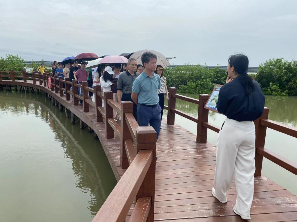 培训期间组织学员到麻章湖光镇金牛岛红树林片区开展现场沉浸式体验教学,循着习近平总书记的足迹,了解海洋生态保护知识,守护红树林的绿与美。组织学员开展研讨交流,观看红色电影,通过培训学习让学员深刻铭记党的光辉历史、传承红色基因,发扬党的光荣传统和优良作风,从党的实践创造和历史经验中启迪智慧、砥砺品格。