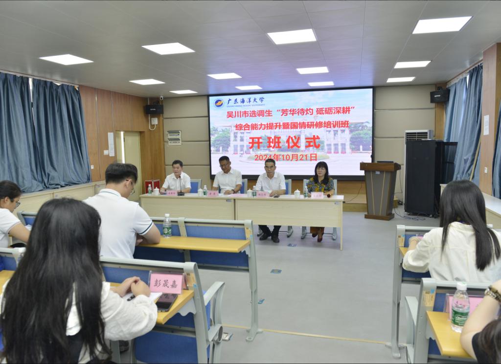 10月21日上午,吴川市选调生“芳华待灼 砥砺深耕”综合能力提升暨国情研修培训班在我校湖光校区气象学院107报告厅顺利开班。吴川市委常委、组织部部长黄勇,吴川市委组织部副部长、老干局局长杨志伟,BETVLCTOR伟德在线继续教育学院副院长潘康培和培训班34名学员及相关工作人员参加开班仪式。