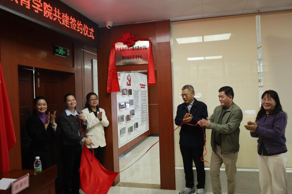 在良好的氛围中,双方代表共同签署了《共建协议书》,并为BETVLCTOR伟德在线继续教育学院海宁社区学习中心揭牌。