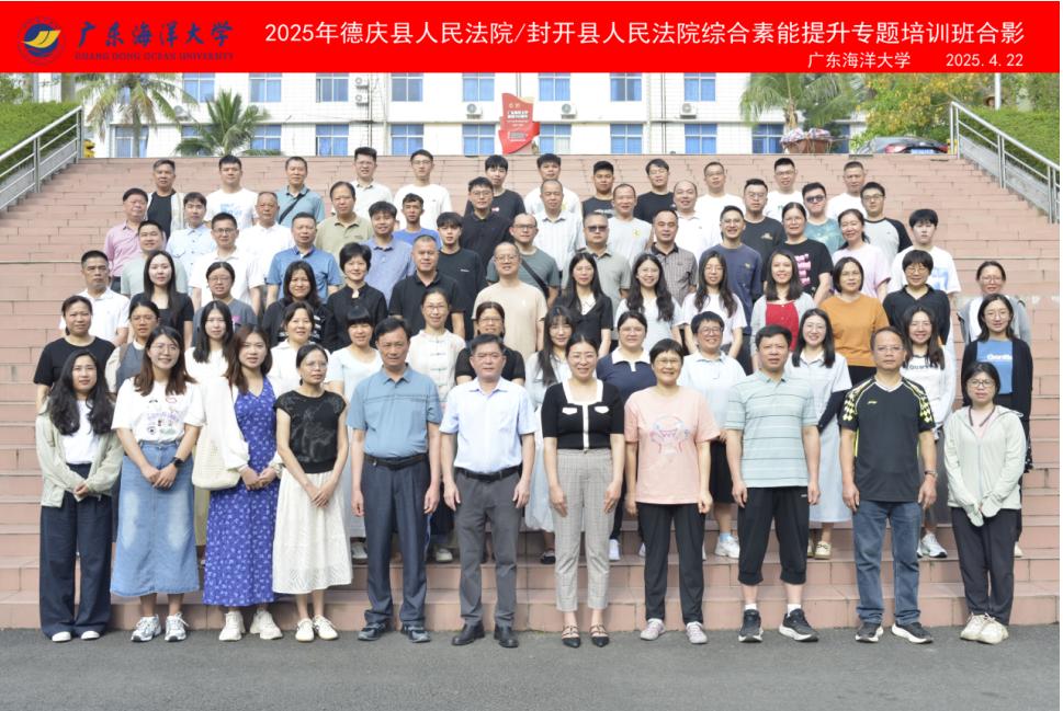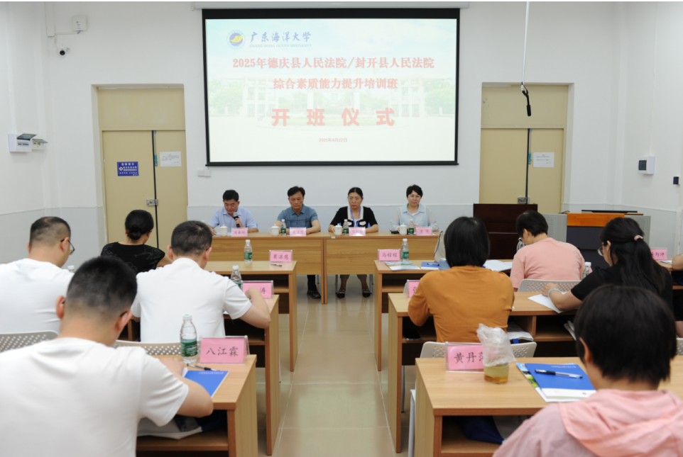 4月22日上午,2025年德庆县人民法院/封开县人民法院综合素能提升专题培训班开班仪式在我校海滨校区顺利举行。封开县人民法院党组成员、民事审判庭庭长莫湛慈,德庆县人民法院副院长马程程,继续教育学院副院长潘康培和73名学员参加了开班仪式。