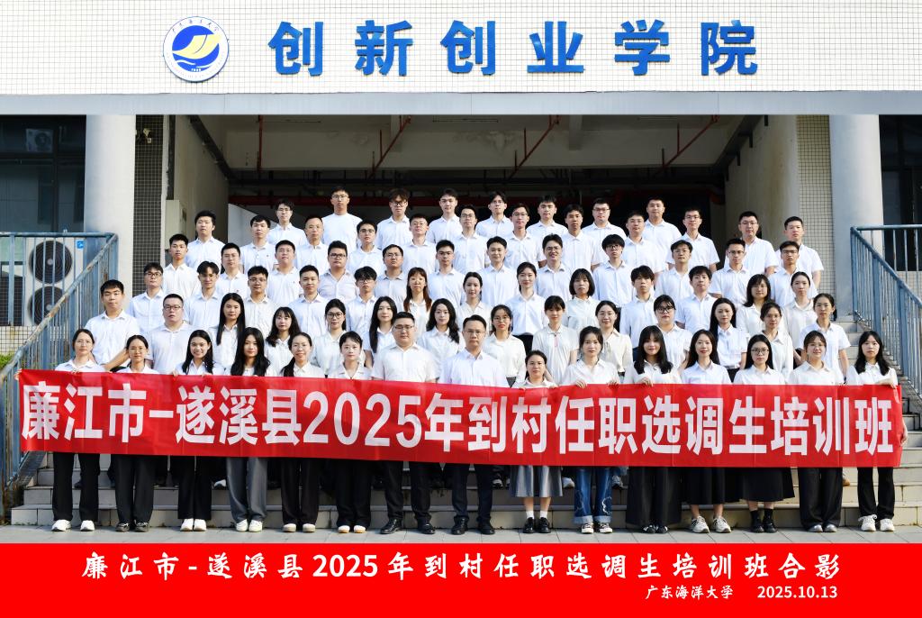 10月13日上午,廉江市-遂溪县2025年到村任职选调生培训班在我校湖光校区海创楼303室顺利开班。中共廉江市委组织部部务委员宣俊宇、继续教育学院副院长潘康培和来自廉江、遂溪两地的73名到村任职选调生参加本次培训班开班仪式。