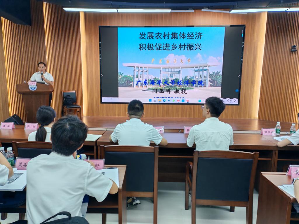 培训课程围绕选调生“懂政策、精业务、善服务”的培养目标,课程设置紧密结合基层工作实际,聘请闫玉科教授主讲《发展农村集体经济 促进乡村振兴》,孟庆吉教授主讲《国情调研察民情 知行合一谋振兴》,孙淑秋教授主讲《习近平总书记关于坚持和完善人民代表大会制度的重要思想》,欧毅主讲《提高新时期干部的群众工作能力--基于实操案例的剖析》,湛江日报社采访中心林艳芳副主任主讲《以笔为锋 讲好湛江故事》,刘国华教授主讲《领导干部工作压力与情绪调适》,刘勤教授主讲《中国式农业农村现代化的县域探索》,韩弘峰副教授主讲《选调生如何更好服务“百千万工程”》等专题讲座。 通过系统的理论学习和案例研讨,学员们进一步掌握了推动农村集体经济发展、做好群众工作、开展县域实践、讲好地方故事等方面的核心能力。大家普遍反映,此次培训内容充实、指导性强,既明确了基层工作的方向与路径,也学到了可操作、可落地的工作方法,为今后更好履职奠定了坚实基础。