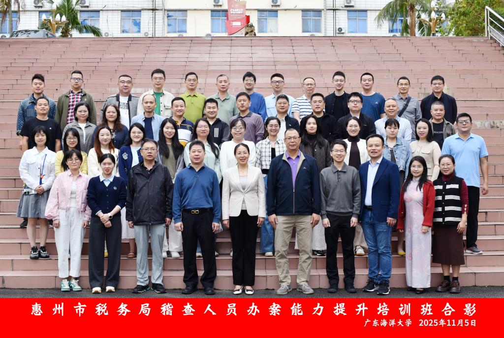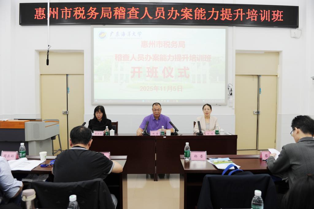 为全面提升税务稽查人员办案水平,筑牢税收监管防线,11月5日上午,国家税务总局惠州市税务局税务稽查业务培训在我校海滨校区举行。国家税务总局惠州市税务局稽查局副局长郑普、我校继续教育学院副院长刘靖以及培训班全体学员和相关工作人员参加开班仪式。