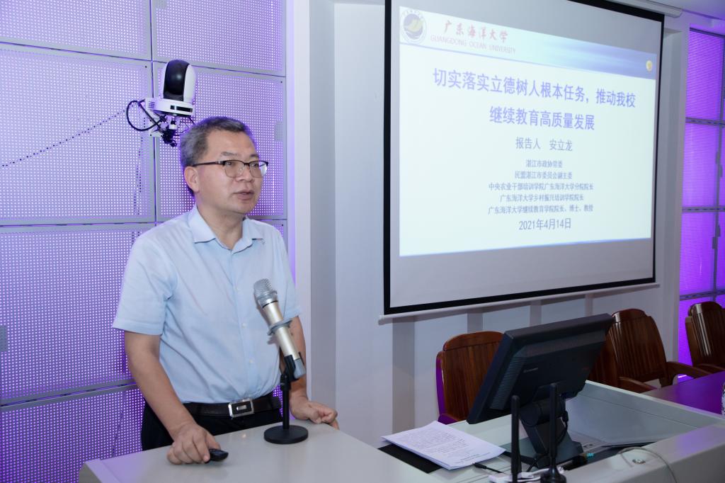 受学校党委常委、组织部长林宇的委托,继续教育学院安立龙院长首先代表学校向到会的各校外教学点领导、老师表示热烈欢迎,对各教学点多年来对我校继续教育工作支持表示衷心的感谢,对各教学点一线工作人员辛苦劳动表示诚挚的谢意。安立龙根据党和国家对高等教育的新要求,按照学校院长第一课和课程思政的要求,结合我校继续教育的工作实际,做了题为《切实落实立德树人根本任务,推动我校继续教育高质量发展》的主题报告,对我校各教学点加强全面加强党对领导,全面贯彻党的教育方针,全面落实立德树人根本任务,切实加强思政教育和国家安全教育提出了要求。报告重点学习了习近平总书记关于“立德树人”的重要论述,以我校继续教育如何落实“立德树人”任务为主线,全面分析了我校继续教育的机遇和挑战,进一步阐明了我校继续教育“稳增长、提质量、强特色、创品牌、增效益、促发展”的工作思路提出的背景、内容和发展目标,安排部署了近期我校继续教育的重点工作。他强调必须以党和国家的要求,行业产业的需求和学生发展的要求为导向,按照学校党委的要求, 切实落实“立德树人”根本任务,进一步加强我校成人高等教育的制度建设和规范化管理,深入推进课程资源建设和教学改革,切实提高人才培养质量,促进我校继续教育健康、稳定、高质量发展。