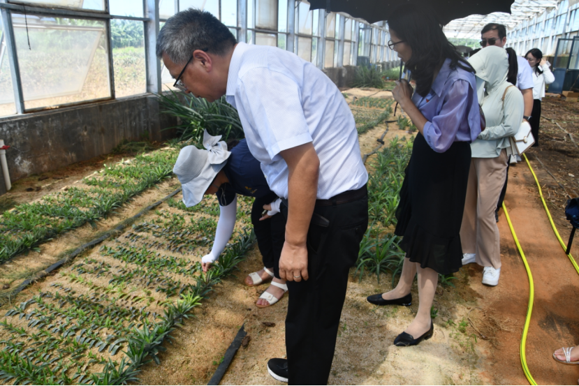 随后,全院教职工到中国热带农业科学院湛江院区试验基地参观学习,近距离感受在习近平新时代中国特色社会主义思想指导下,我国农业科技工作者开展科学创新,培育菠萝新品种推进菠萝产业化发展取得的巨大成就,深刻领悟种业振兴是农业现代化的关键,人才、科技和教育是实现中国式现代化的战略支撑,教职工增强了做好非学历教育,开展农业技术培训,做好农业教育培训,促进农业农村现代化的积极性、主动性和创造性。