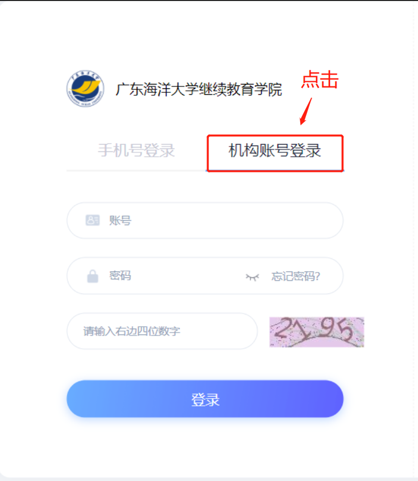 4、新生必须在班主任或教务员的指导下,登录综合教务管理系统(http://gdhydx.jxjy.chaoxing.com/login),首次登录需选择机构账号登录页面进行登录,账号为学号,密码为身份证号后六位,学号由学校继续教育综合教务管理系统(统一)生成,由班主任或教务员下发。学生首次登录综合教务管理系统,需完善并核对个人信息,如有错误,应立即报给班主任或教务员上报学院进行修改。新生可使用综合教务管理系统查看个人学籍资料、课程安排、提交各类申请以及查阅学校、学院通知公告等。